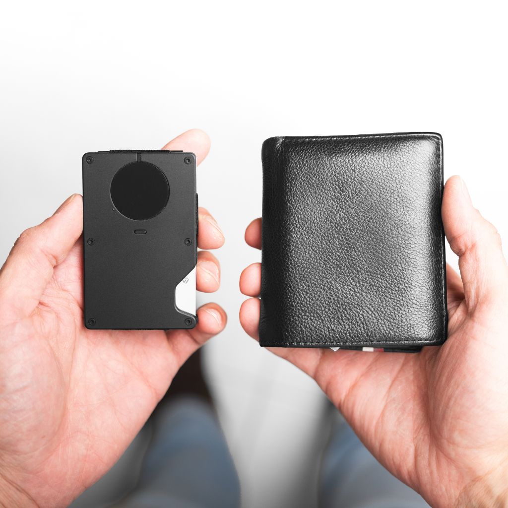 Half the thickness of a normal wallet, giving you a clean, comfortable fit that disappears in your pocket.